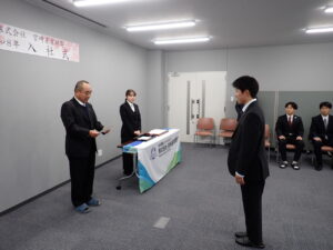 新たな仲間を5名迎え、新社屋ではじめての入社式を行いました。